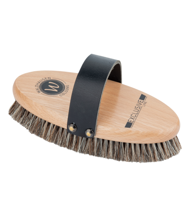 Exclusiv børste fra Waldhausen, med tætte børstehår af høj kvalitet (50% hestehår/50% syntetiske fibre). Børsten hjælper til at fjerne snavs i pelsen og efterlader pelsen skinnende.