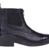 Denne korte ridestøvle fra QHP er flot designet med syning og lynlås foran. Med elasstisk indsats i siden og en stærk gummisål, som hjælper dig til at stå godt fast.