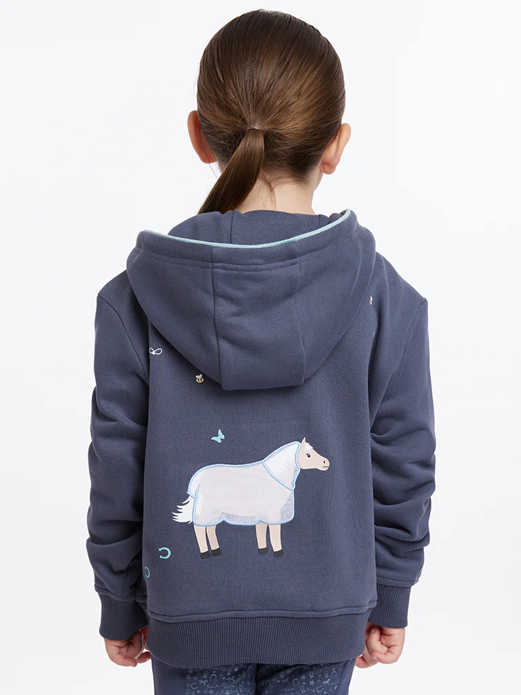 Hættetrøje fra LeMieux, som holder den lille rytter varm på de kølige dage.