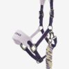 Tøjlen har et farverigt flettet design og en stilfuld 25 cm kunstlæderhale. Den er fremstillet af kvalitetsrøvlet reb med en robust karabinhage i børstet metal, der sikrer holdbarhed og nem brug.