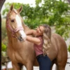 Luksuriøs grime med fleeceindlæg ved nakkestykket og næsebåndet. Disse fleeceindlæg sikrer en jævn trykfordeling og er udstyret med ekstra polstring for den bedst mulige komfort. Sidestykkerne er også foret med fleece for at forhindre gnidning og irritation på hestens hud. Grimen kan justeres flere steder, både ved hageremmen og nakkestykket, fra begge sider. Der medfølger et farverigt og holdbart matchende træktov.