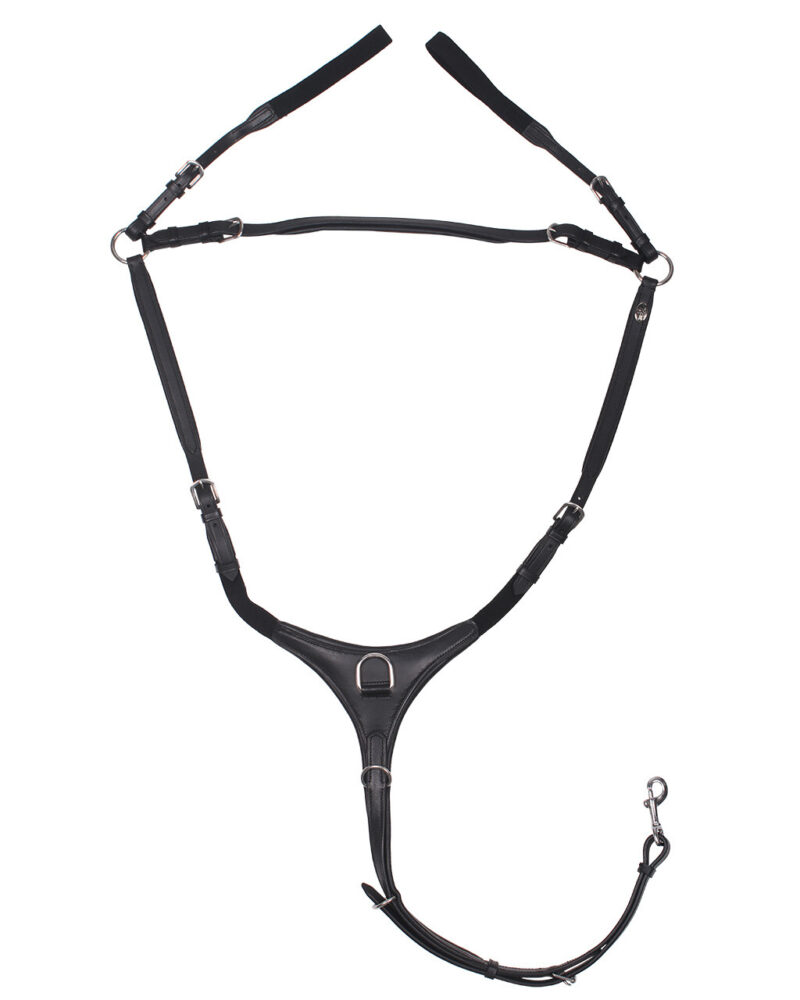 Dette luksuriøse fortøj fra QHP forhindrer sadlen i at glide bagud, for eksempel under springning. Fortøjet er fuldt udstyret med blød polstring for at forhindre gnidninger. Justerbar og med mulighed for at fastgøre martingal.