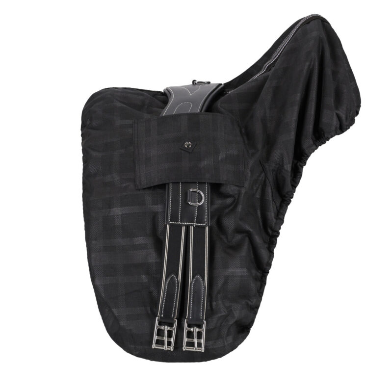 Praktisk sadelovertræk i vandafvisende stof med blødt fleecefor, der beskytter din sadel mod snavs og fugt. Den rummelige størrelse gør, at overtrækket passer til næsten alle engelske sadler. Overtrækket kan nemt justeres med en elastisk snor med stopper, så det sidder sikkert. På begge sider er der desuden løkker, så gjorden kan føres igennem.