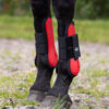 Sæt med to springgamacher til forbenene med hård ydreskal og neoprenfor. Lukkes med velcro. Beskytter hestens ben mod stød og slag.