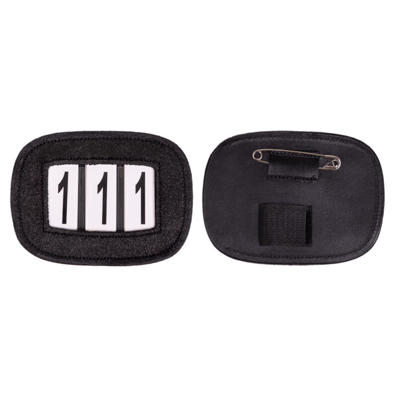 Flot stævnenummer som matcher ethvert stævneoutfit. Fastgøres nemt til trensen eller underlaget med sikkerhedsnål eller velcro. De udskiftelige tal er inkluderet.