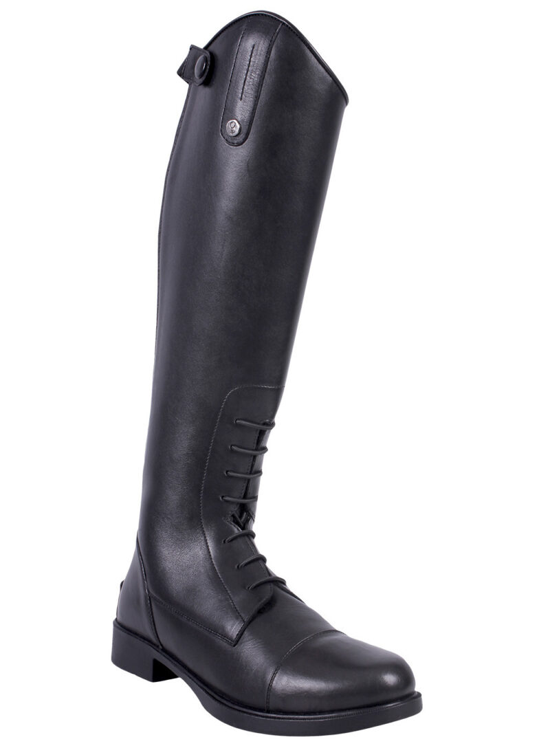 Smart læderridestøvle i juniorstørrelse med funktioner svarende til en voksenridestøvle. Støvlerne har YKK lynlåse med elastikindsats, som gør at støvlen kan give sig lidt i læggen. Derudover er støvlerne designet med snørre over vristen og medium dressur bue.