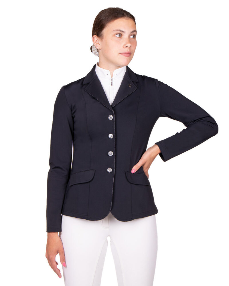 Elegant og sporty stævnejakke, lavet af softshell materiale med 4-vejs strech, som gør jakken behagelig og let at have på. En rigtig god stævnejakke både til nybegynderen og den øvede rytter.