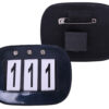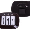Elegant stævnenummer i laklæder med 3 dekorative sten. Nem at fastgøre på underlag eller trense med velcro eller sikkerhedsnål.