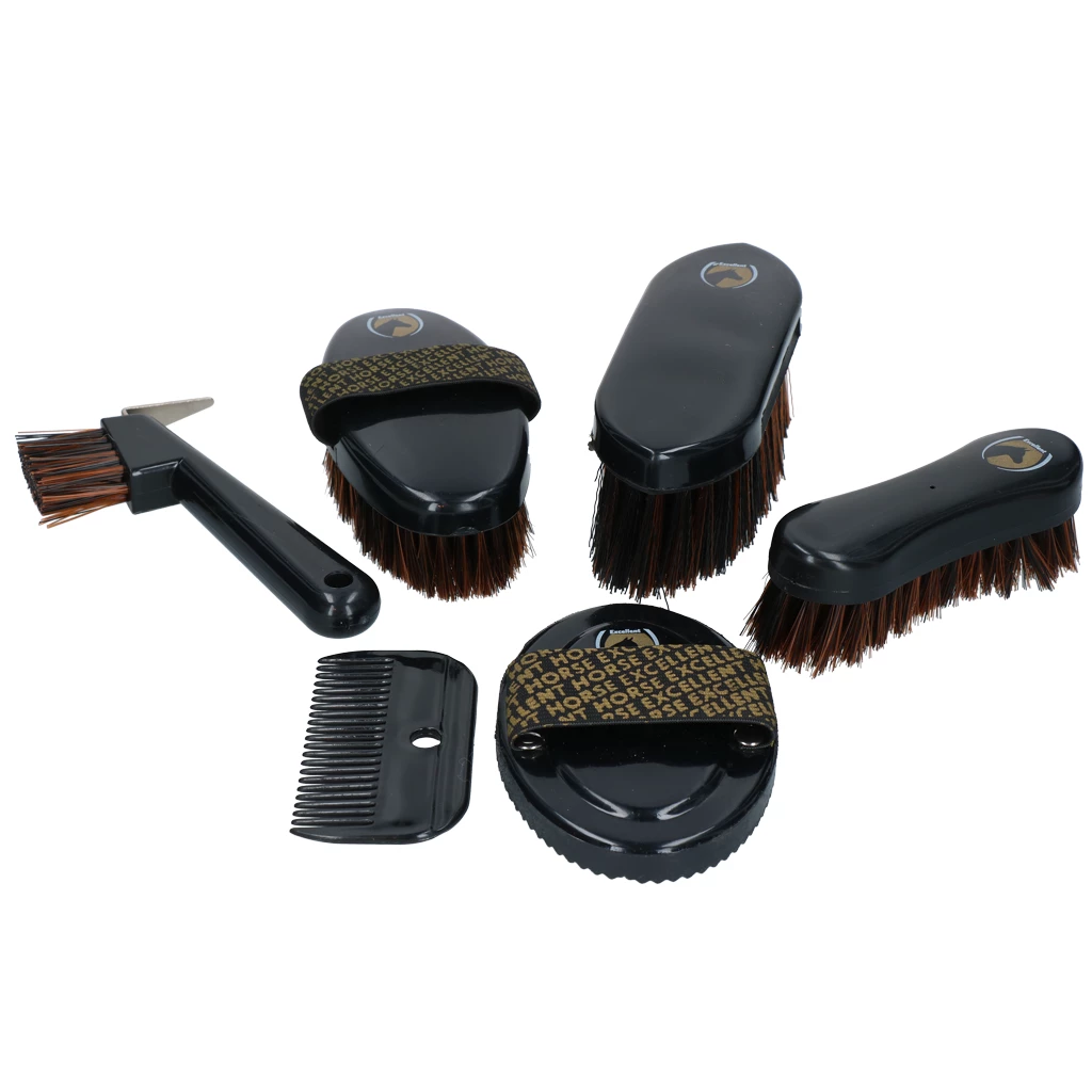 Komplet striglesæt med taske, perfekt til den nye rytter! Dette sæt indeholder alt hvad du skal bruge til at børste pelsen, rede manen og rense hovene.